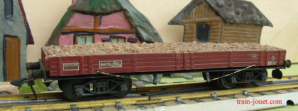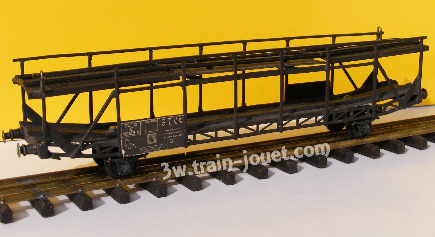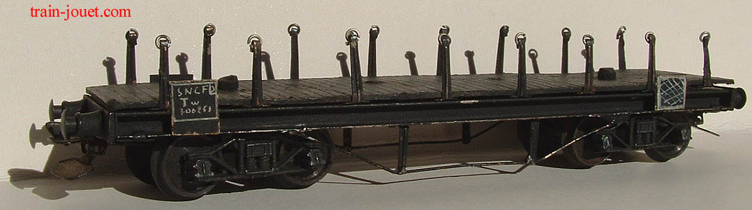 J.L Wagon plat à bords bas, à essieux et grand empattement.