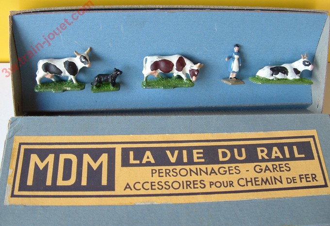 M.D.M. H.O Boîte la fermière, son chien et ses vaches en plomb. |