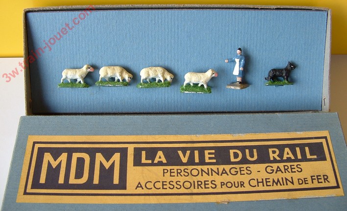M.D.M. H.O Boîte troupeaux de mouton, chien et bergère en plomb. |