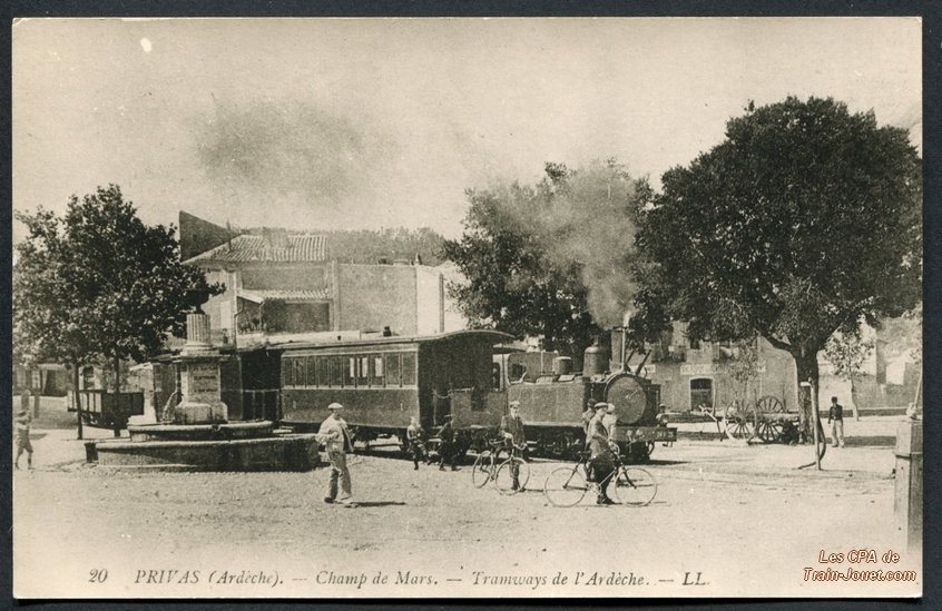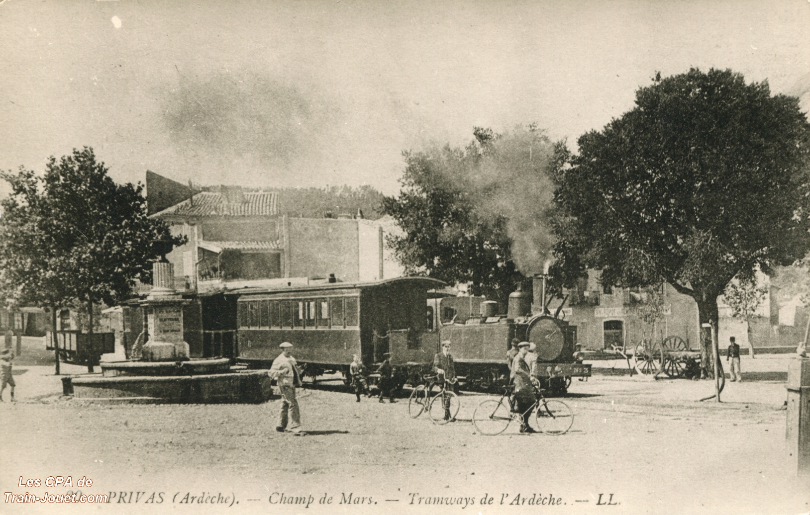 Ancienne reproduction d'une CPAPrivas (Ardèche) - Champ de MarsTramways de l'Ardèche |