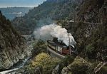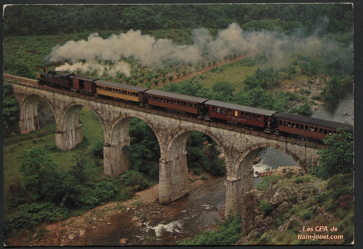 Chemin de Fer Tournon-Lamastre - CPSMTrain à vapeur sur le Viaduc d'Arleboscavec voitures réseau Breton - Juin 1975