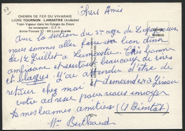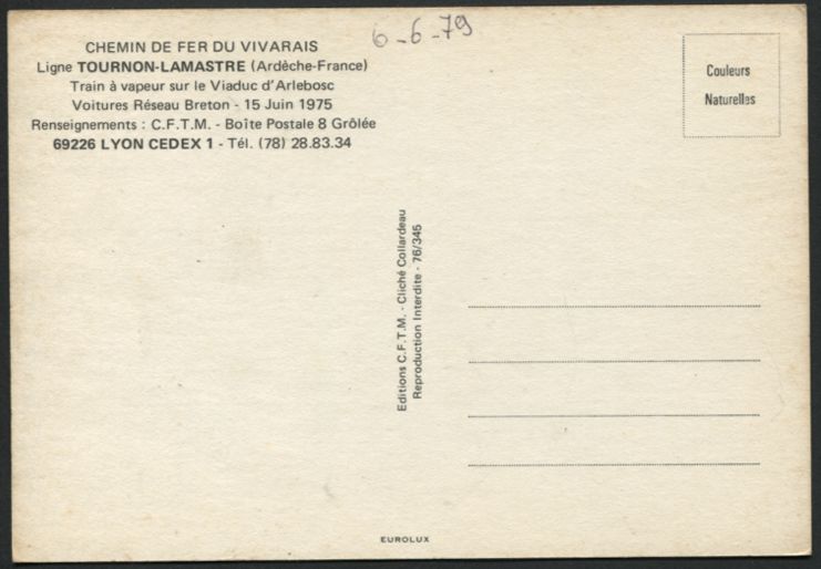 Chemin de Fer Tournon-Lamastre - CPSMTrain vapeur dans les Gorges du DoubsEdition C.F.T.M. |