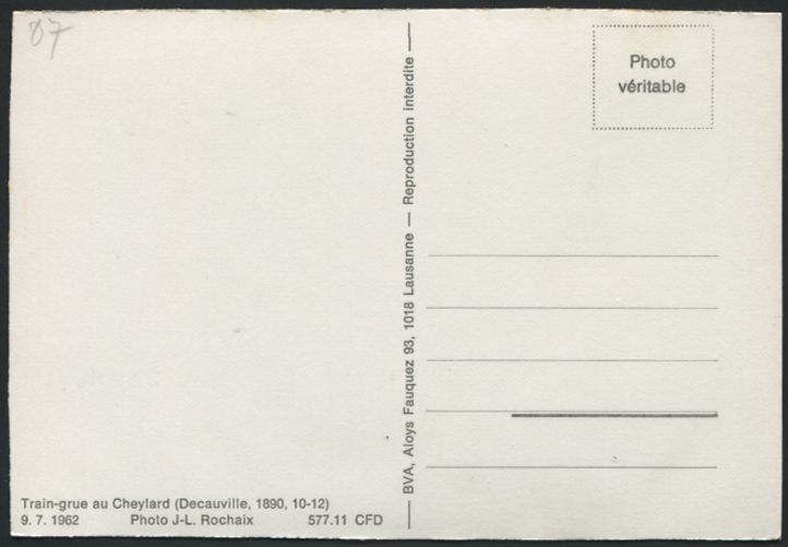 CFD - 1962 - Train-Grue au CheylardPhoto JL Rochaix - Edition BVA 577.11petites découpes en haut et en bas |