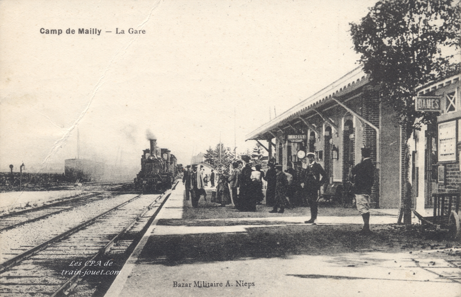 Camp de Mailly.La Gare.Bazar Militaire A. Nieps.Pli à gauche |