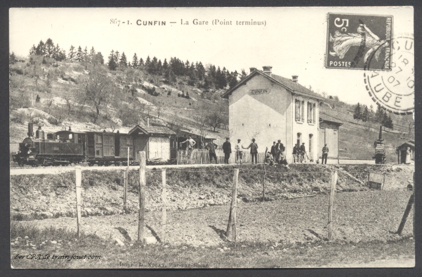 Ancienne reproduction d'une CPA.Cunfin.La Gare - Point Terminus. |