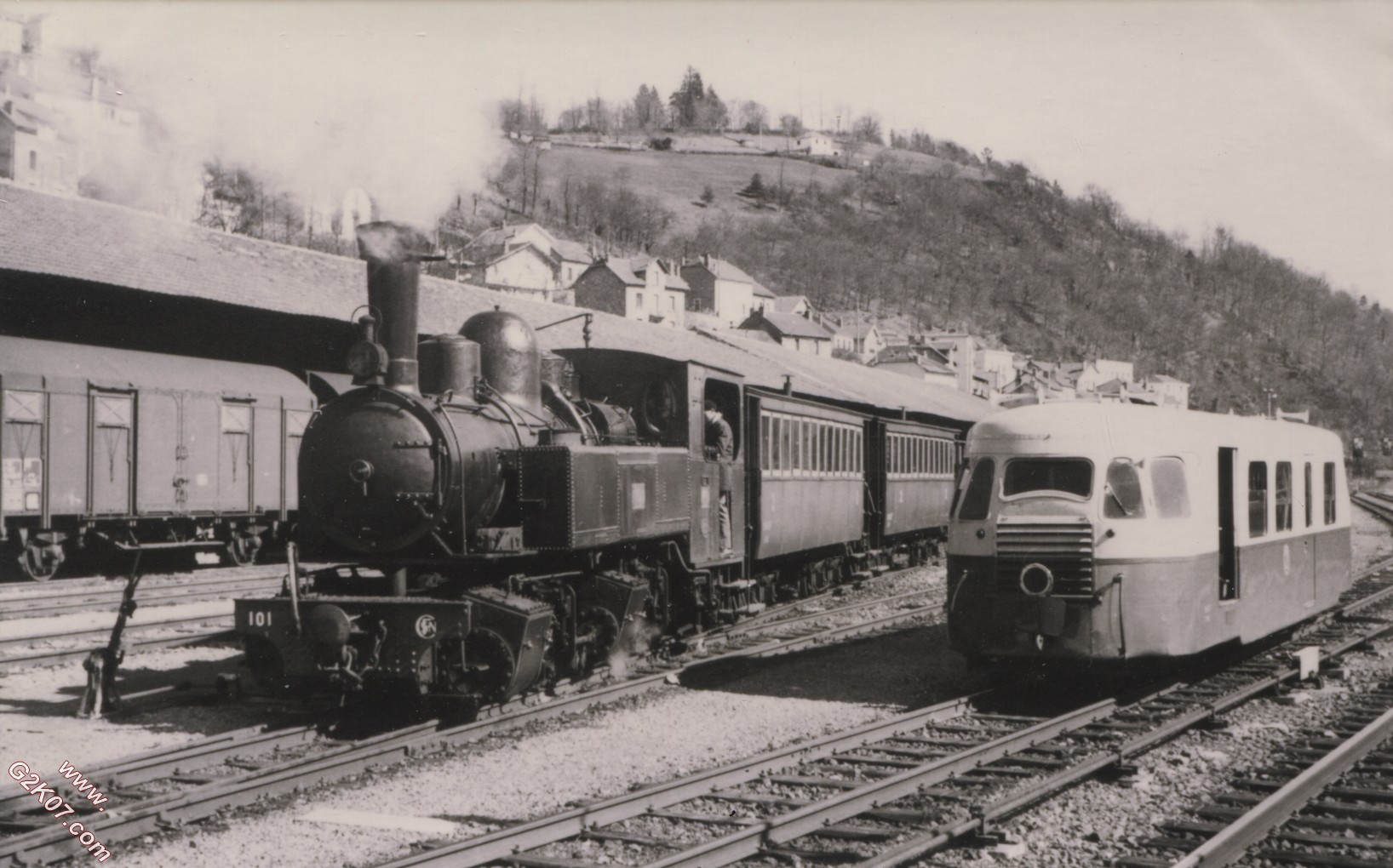 En gare de Tulle: Autorail Billard et sa remorque