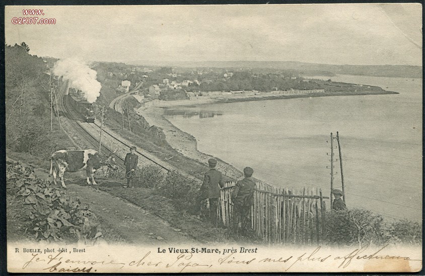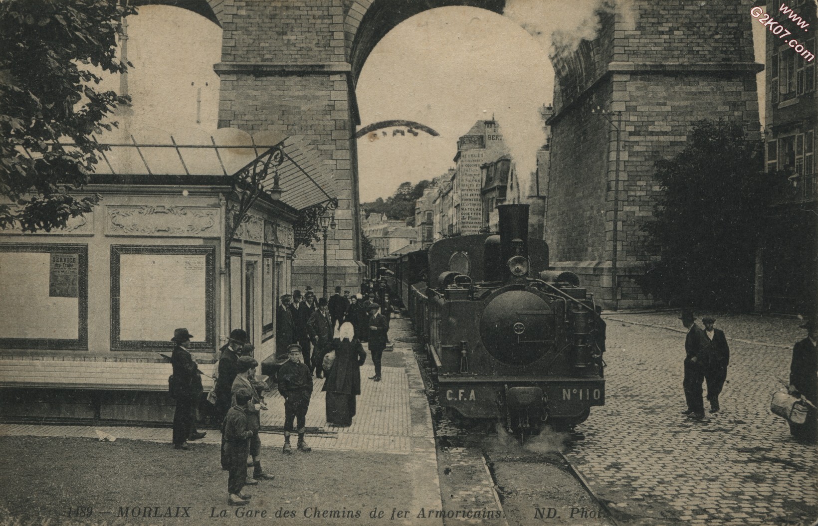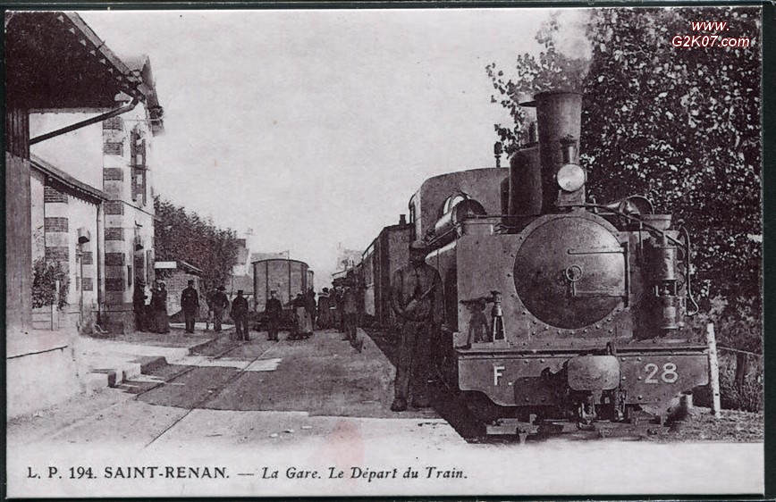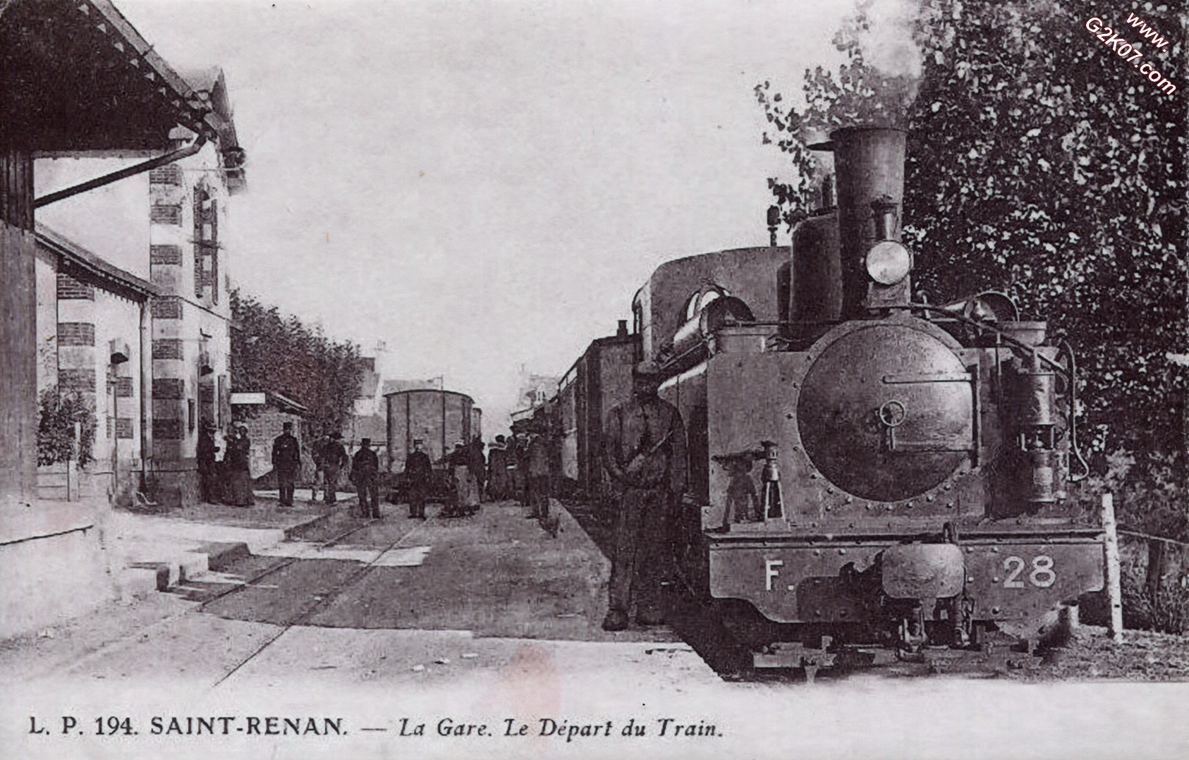 REPRODUCTION sur papier photo d'une CPASaint-Renan - La Gare Le Départ d'un Train |