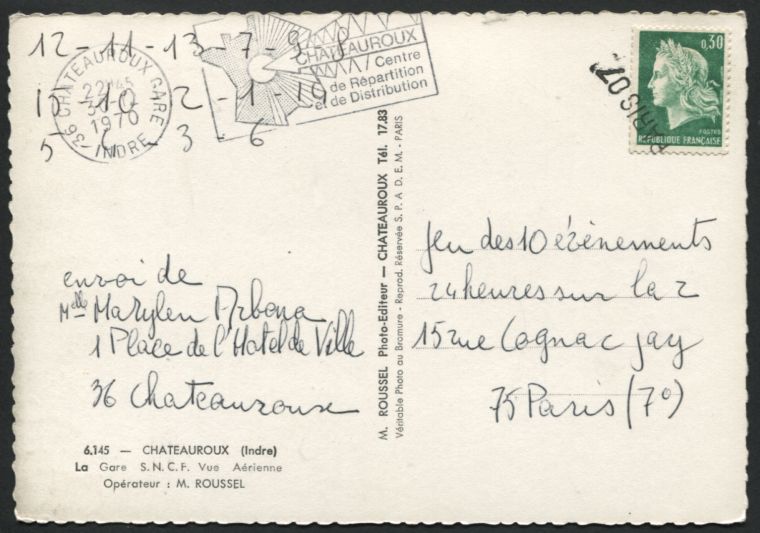 CPSM - Chateauroux (Indre)La Gare SNCF, vue aériennen° 6.141 - M. Roussel Photo-Editeur |