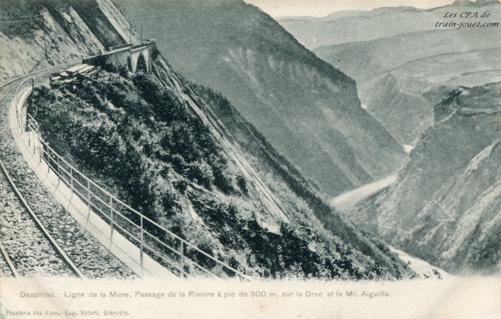 Ligne de la Mûre.Passage de la Rivoire à pic de 300m. sur le Drac et le Mt. Aiguille.Pap. des Alpes.