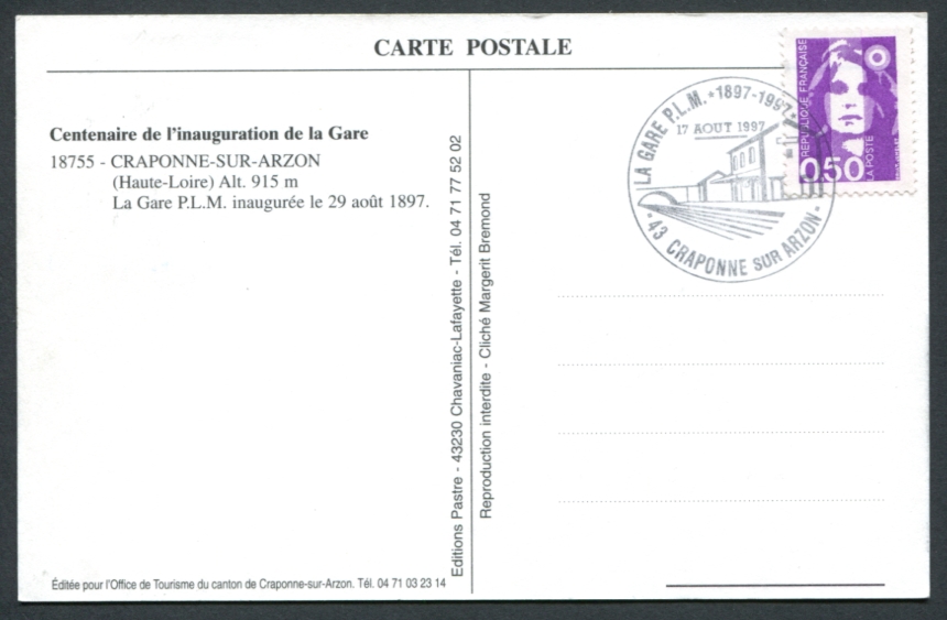 Carte Postale Moderne (CPM)Craponne-sur-Arzon - La Gare PLMCarte éditée pour le centenaire de son inauguration (voir cachets) |