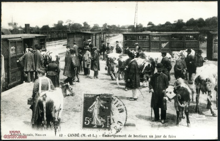 REPRODUCTION d'une CPA sur papier photoCandé - Embarquement de Bestiaux un jour de Foire |