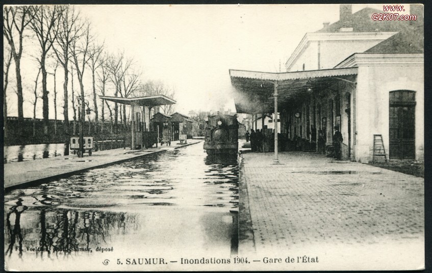 | REPRODUCTION ancienne d'une CPA Saumur Inondation 1904 - Gare de l'ETAT |