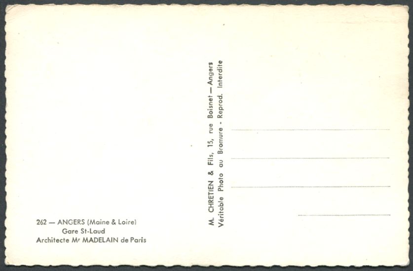 " J'arrive à Angers et pense à vous "n° 406 - L. V., Phot. |