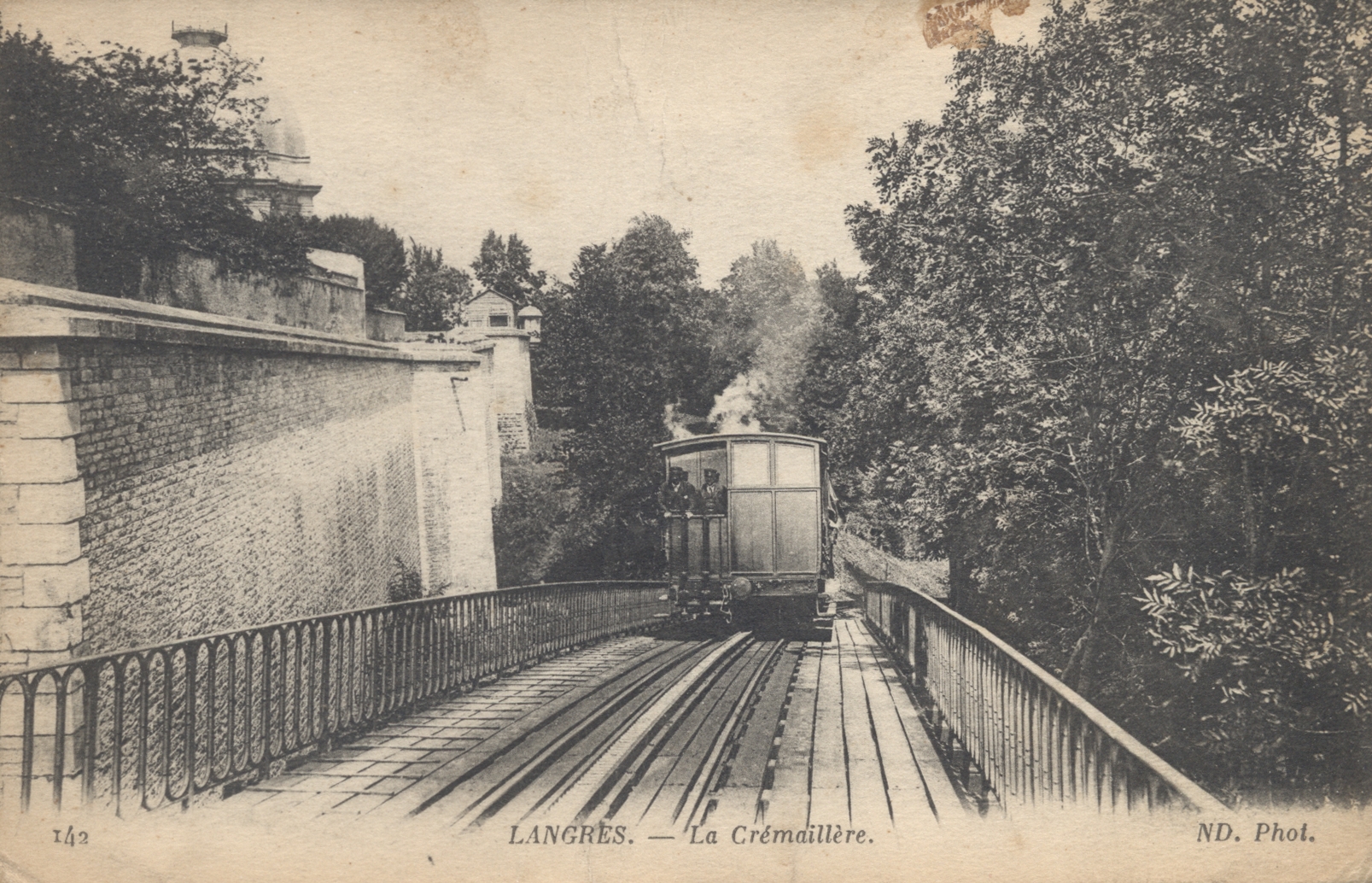 Langres - Le Chemin de Fer à Crémaillèrereliant la Gare à la Ville, située 140 mètres plus haut