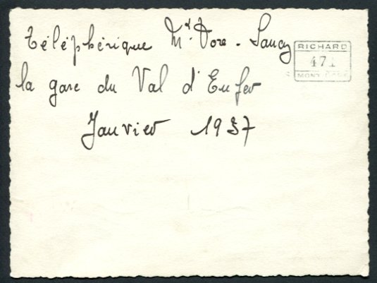 Photographie format 135 x 100.Téléphérique Mt-Dore - Sancy.La Gare de Val d'Enfer en Janvier 1937. |