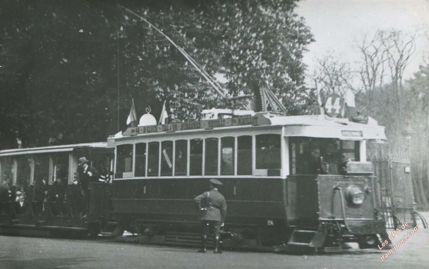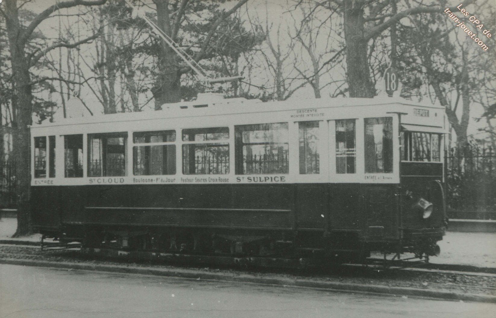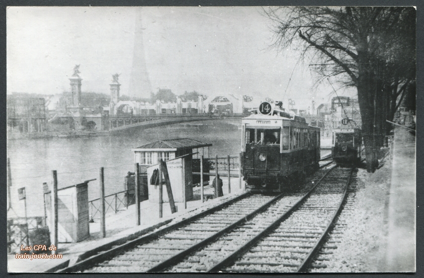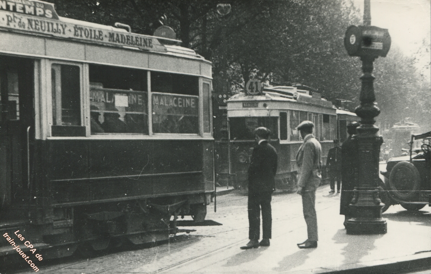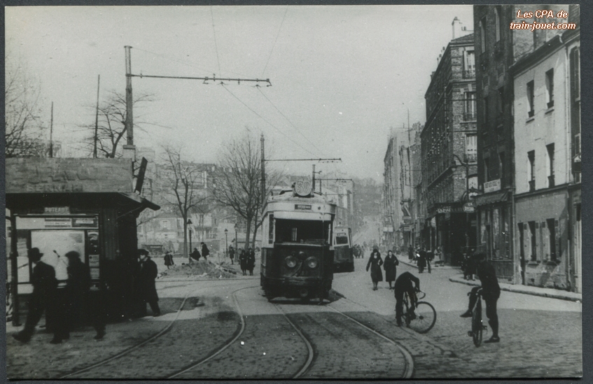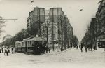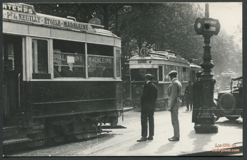 Photo cartonnée P. LaurentTramway de la Ligne 38 à la Porte MaillotDécembre 1936