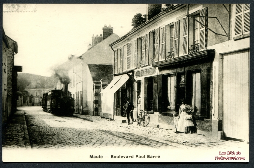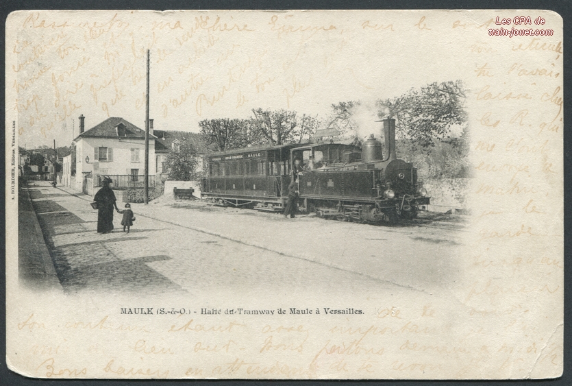 MauleHalte du Tramway de Maule à VersaillesA. Bourdier EditeurPli coin bas droit, coin bas gauche abîmé, manque timbre |