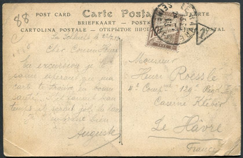 GérardmerLe Train dans la Grande TranchéeL.L. 88 - Voir cachets militairesSe décolle dans sa partie centrale |