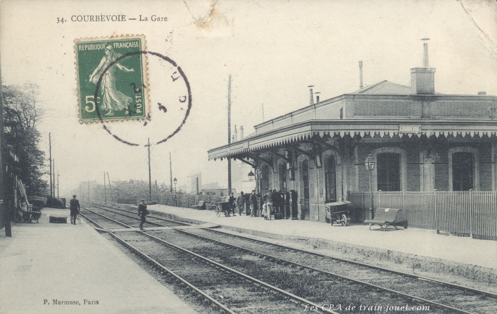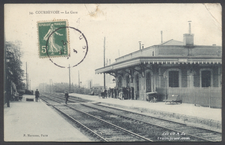 Courbevoie. La Gare.P. Marmuse n°34.Déchirée en haut & pli coin haut droit |