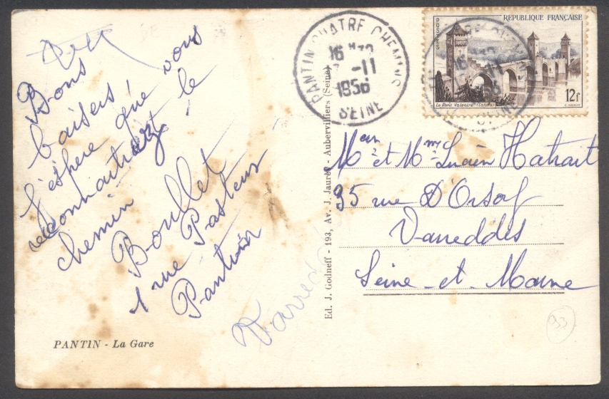 Pantin.La Gare.Edit. Godneff.Le dos est bien tâché |