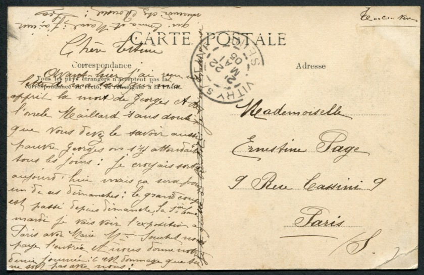 "Je pars de PERREUXet vous envoie mes Amitiés"E. A. Paris P. Legrand Phot.