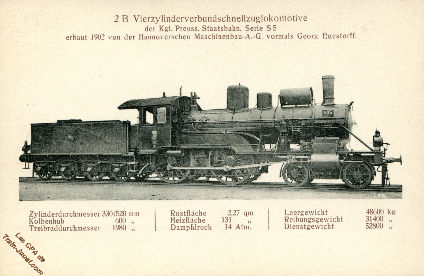 2-C 4 cyl. Heissd.-Schnellzugs-Lokomotived. Preuss - Staats-Eisenbahn S 10.