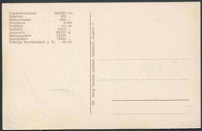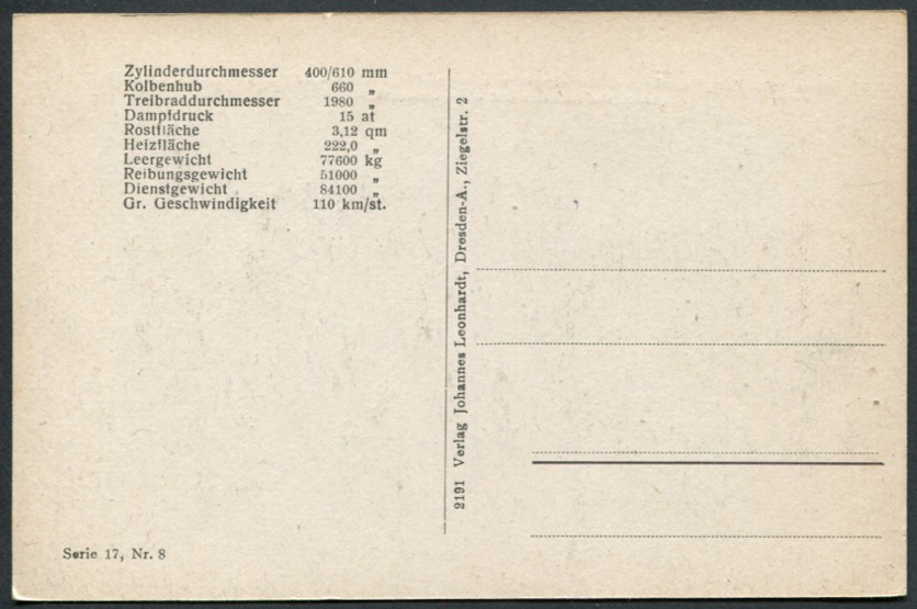 2 C-Heissdampt-Vierzylinder-Verbund-Schnellzuglokomotiveder Preussischen Staatsbahn Serie S10.Serie 17 n°8