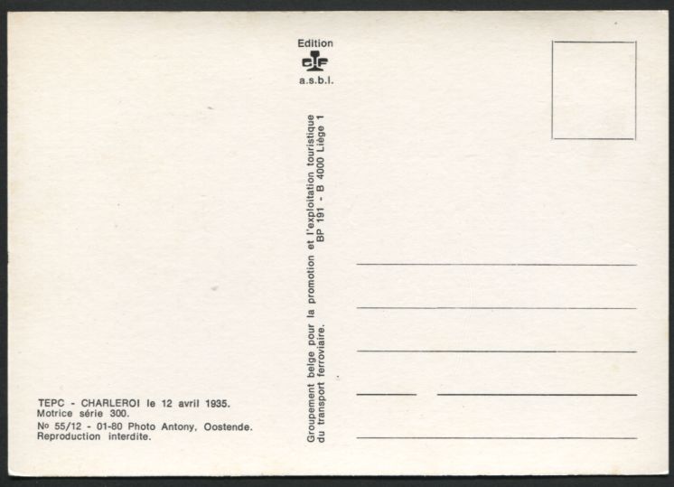 Charleroi 1935 - TEPC - Motrice série 300CPM Edit. A.S.B.L. n° 55/12 |