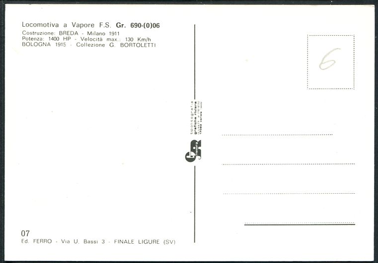 Italy - Locomotiva a VaporeF.S. Gr. 690-(0)06 - n° 07 Edit. Ferro |