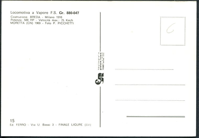 Italy - Locomotiva a VaporeF.S. Gr. 880-047 - n° 15 Edit. Ferro |