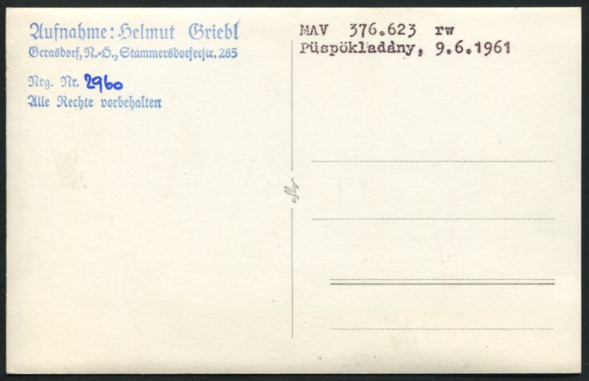 Hongrie Püspökladány - 1961MAV Dampflok 376.623Photo/carte by Griebl Helmut |