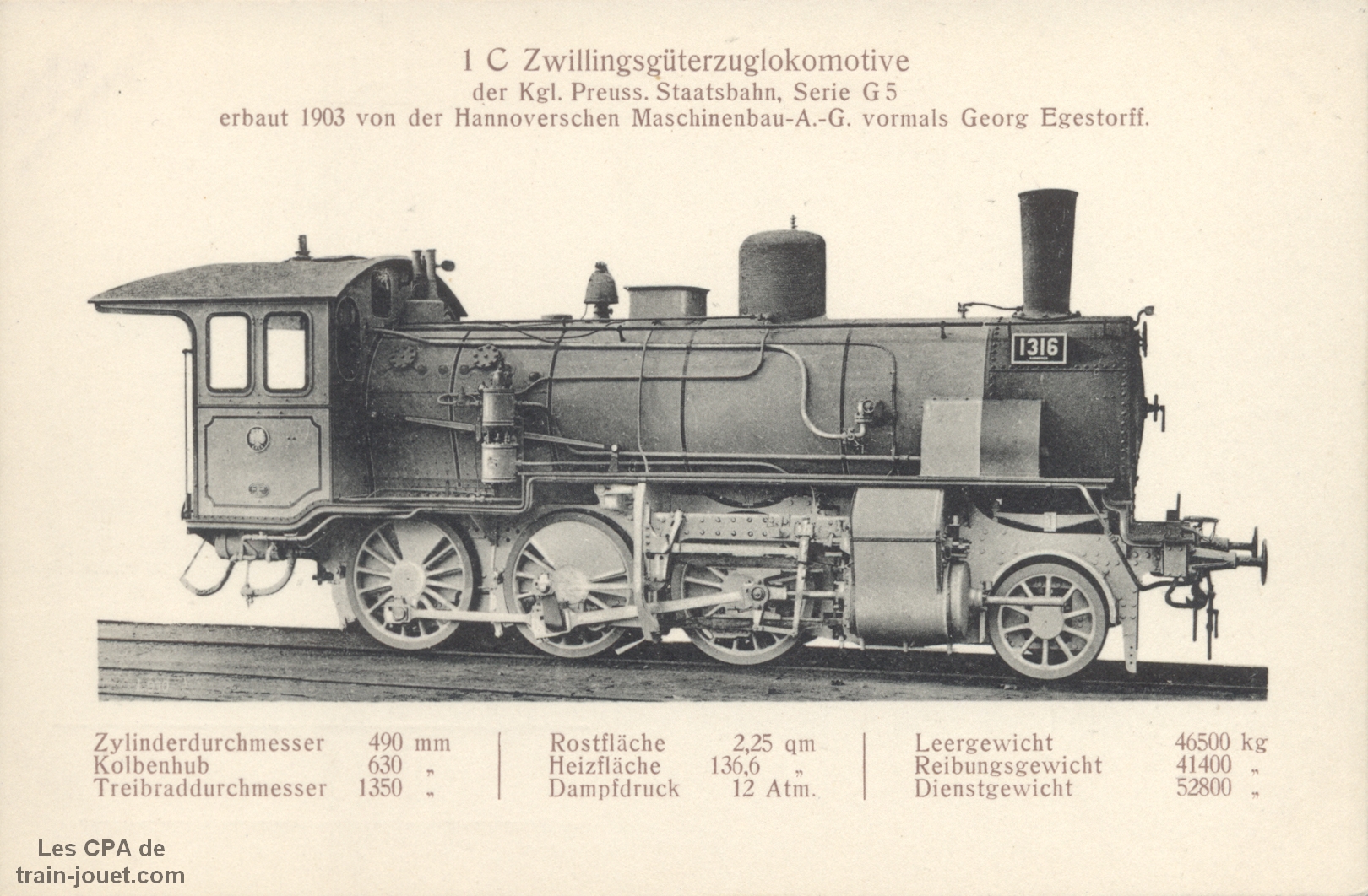 1 C Zwillingsgüterzuglokomotiveder Kgl. Preuss. Staatsbahn - Serie G5 - 1316 |