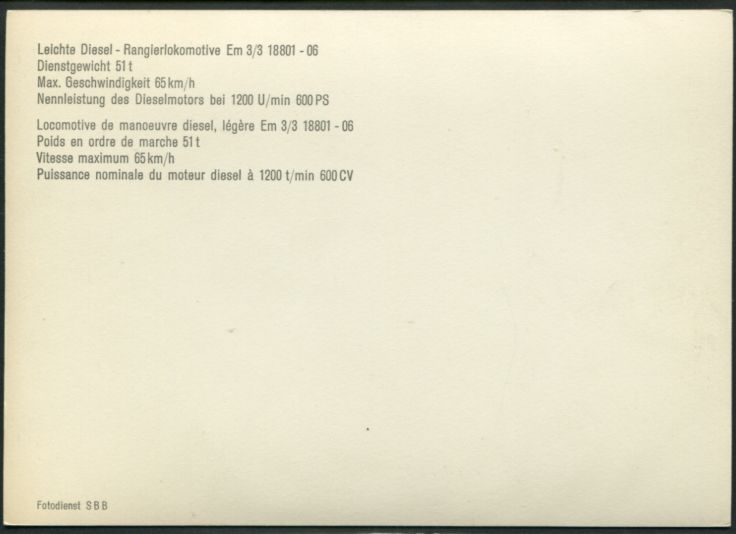 Suisse - Locomotive de Manœuvre diesel Em 3/3 18804Photo SBB |