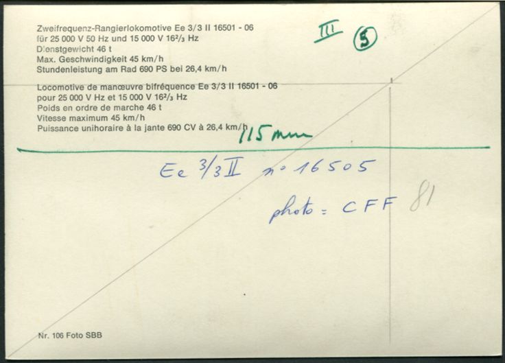 Suisse - Locomotive de Manœuvre Ee 3/3 II 16505n° 106 Photo SBB |