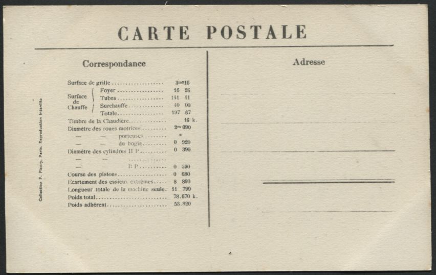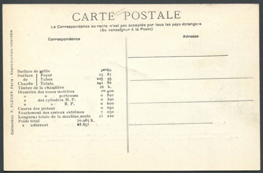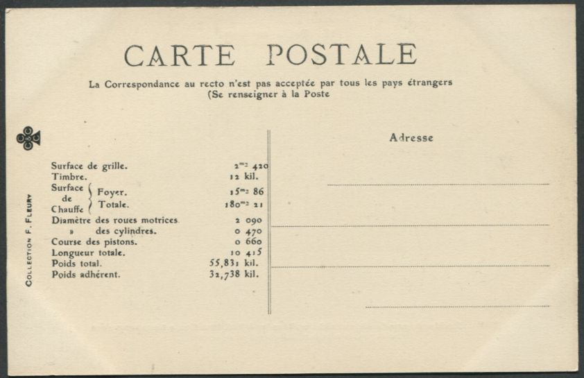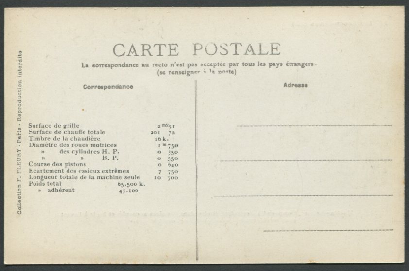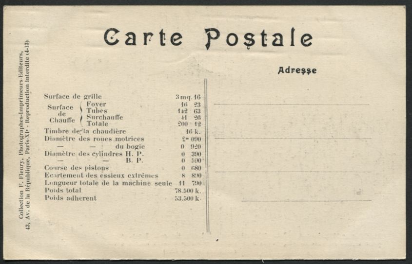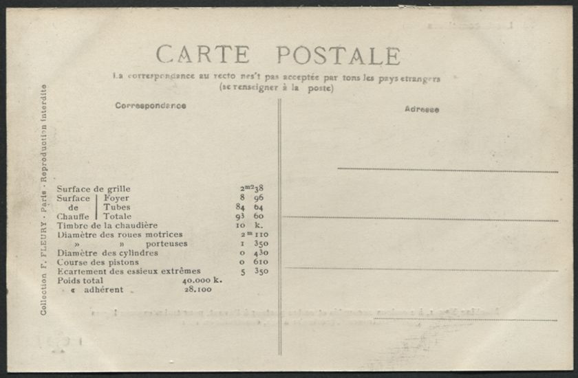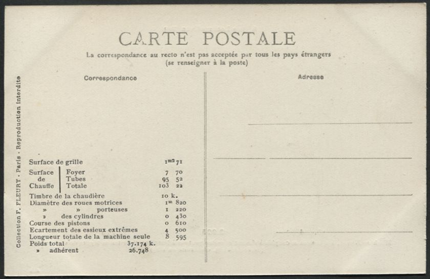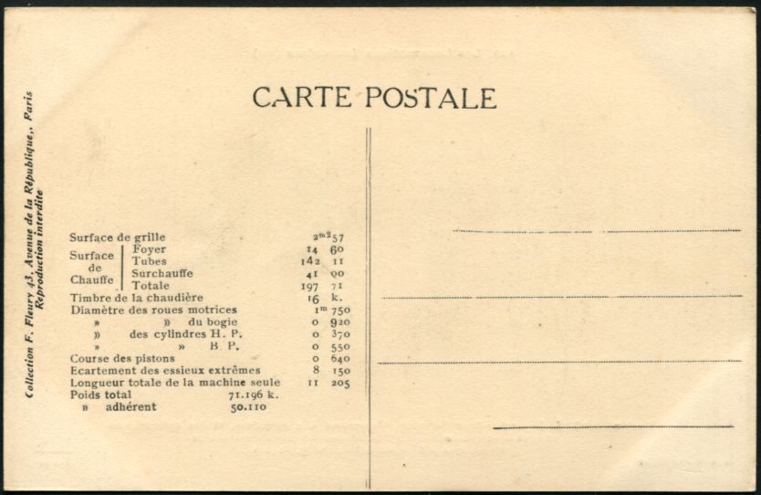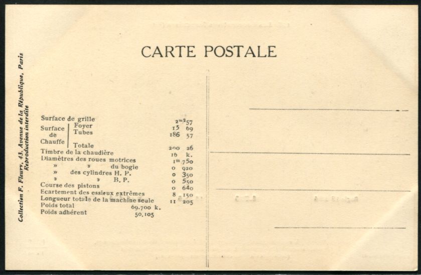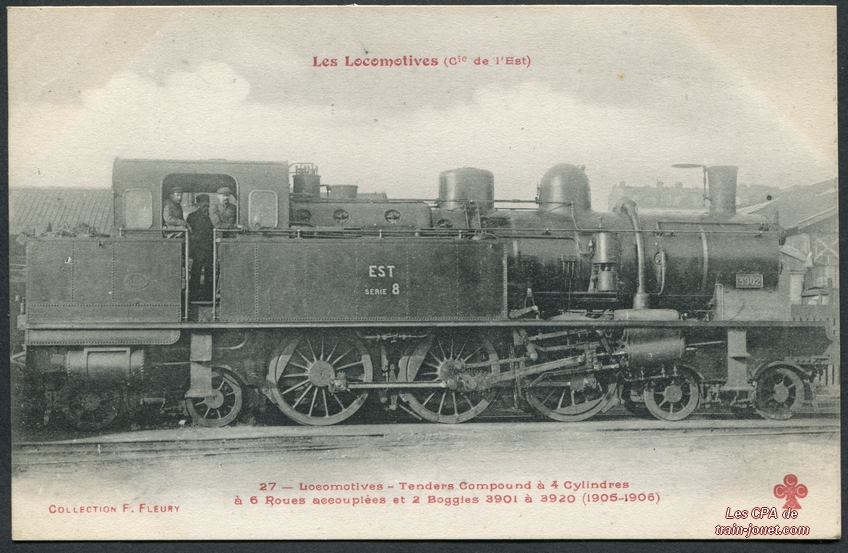 Les Locomotives (Cie de l'Est)Locomotive-tender n° 3902 - Type 232Collection F. Fleury n° 27 |