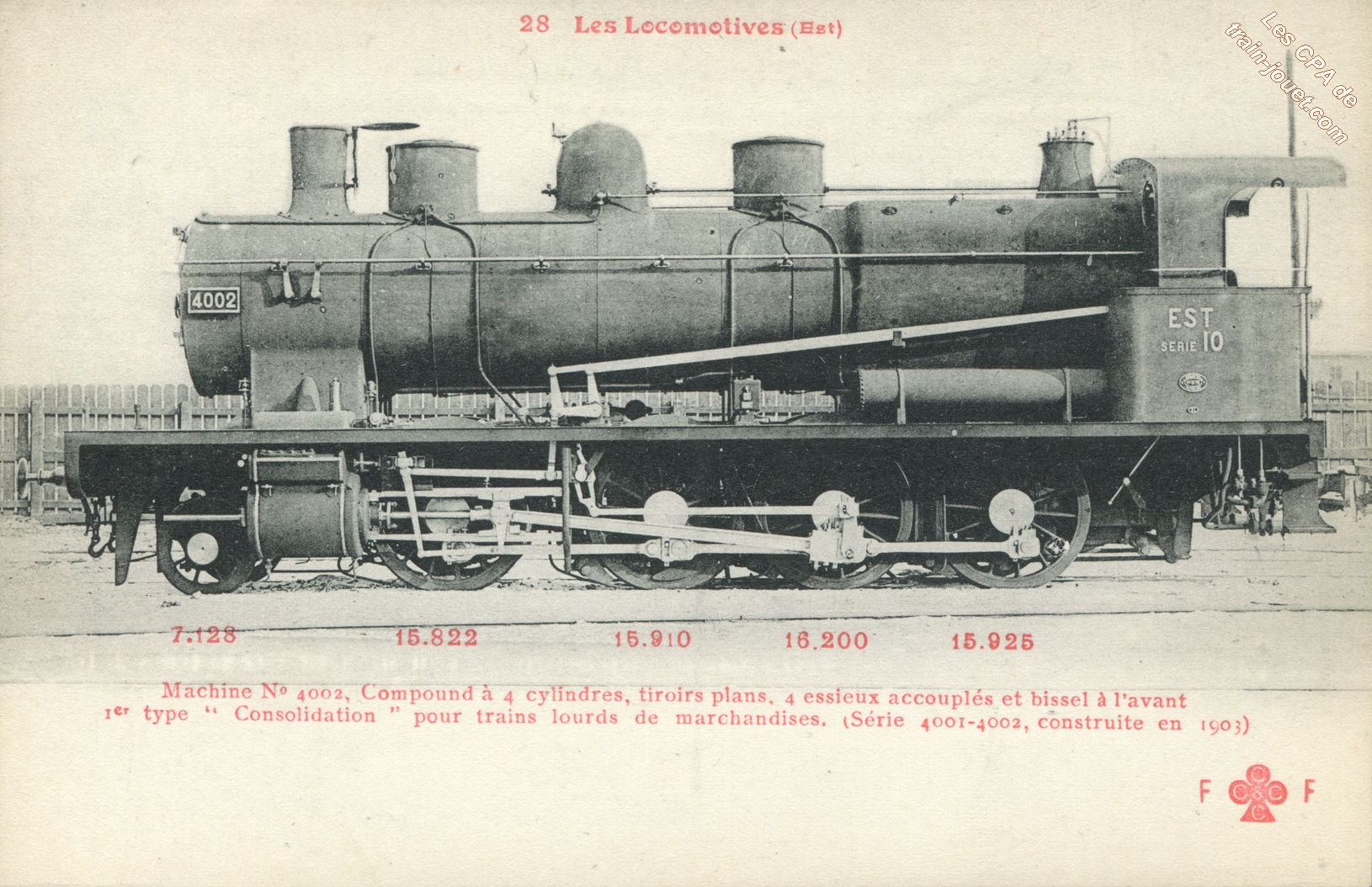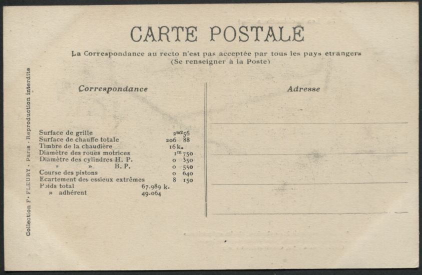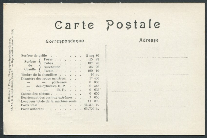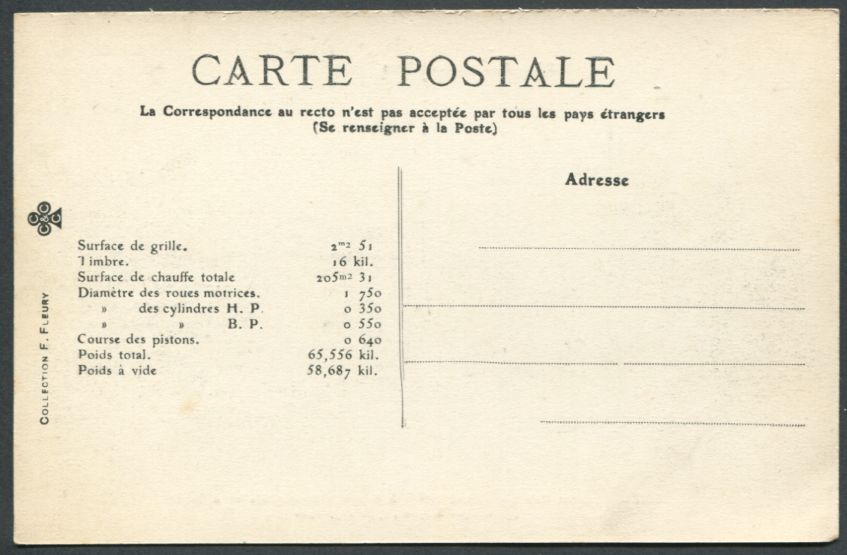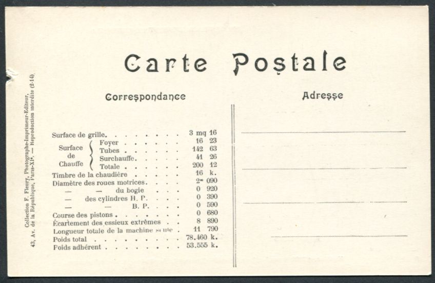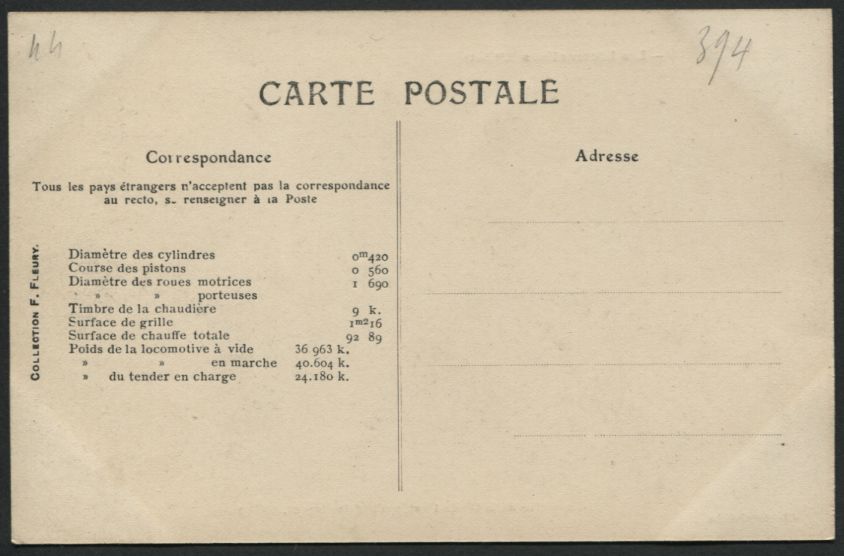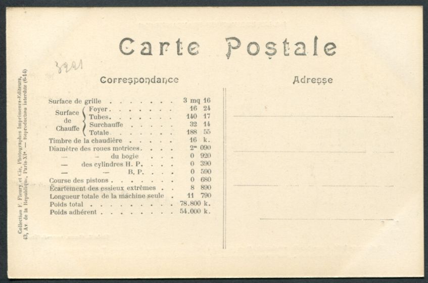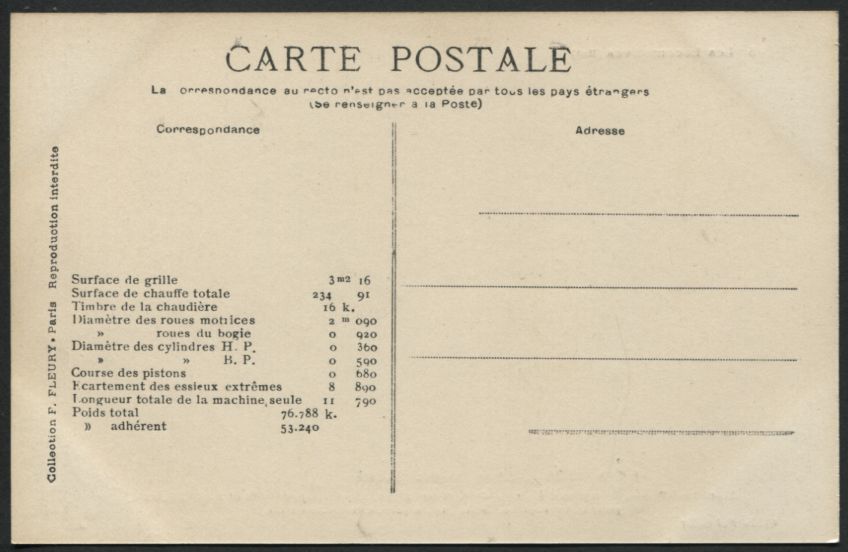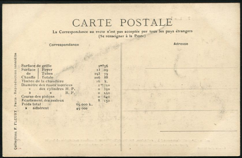 Les Locomotives (Cie de l'Est)Locomotive-tender n° 3902 - Type 232Collection F. Fleury n° 27 |