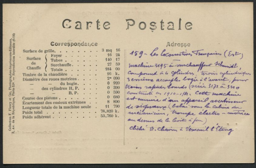 Les Locomotives Françaises (Est).Machine n° 3162 type 230F. Fleury n° 113 |