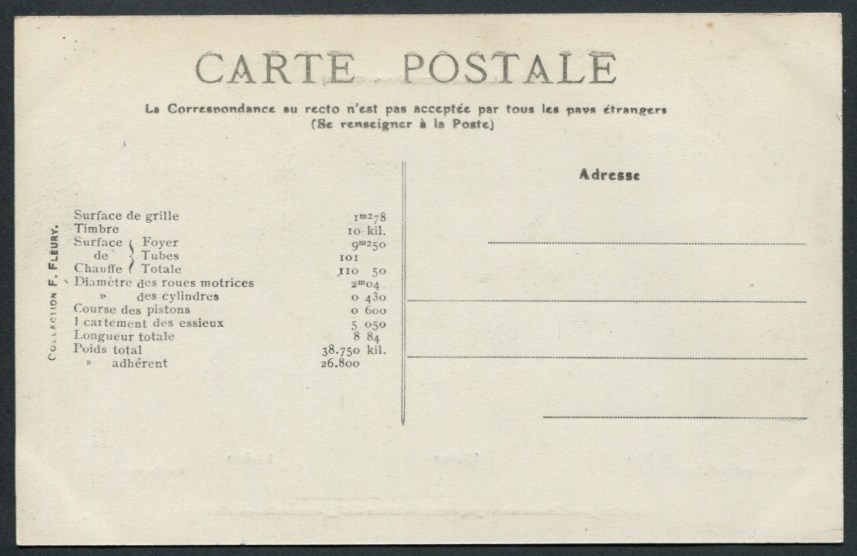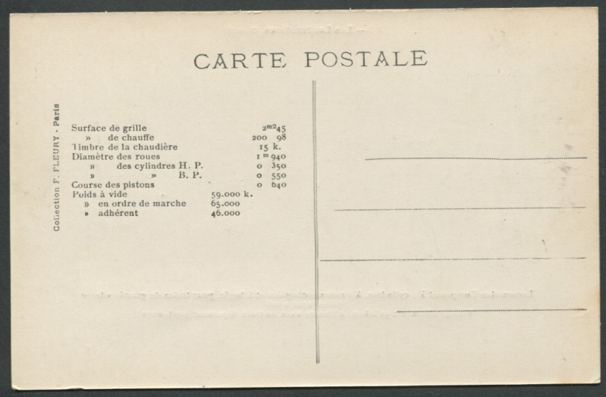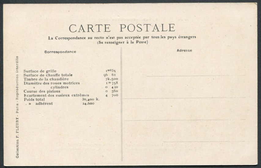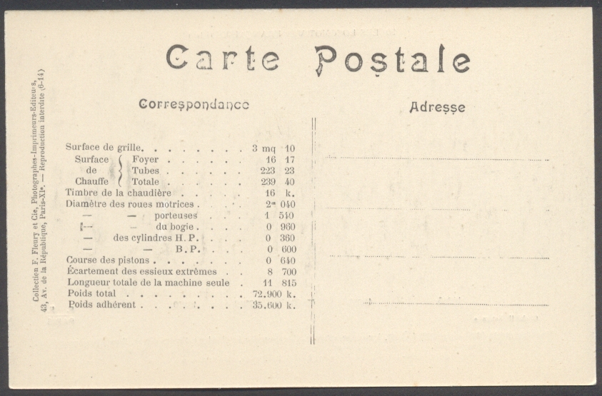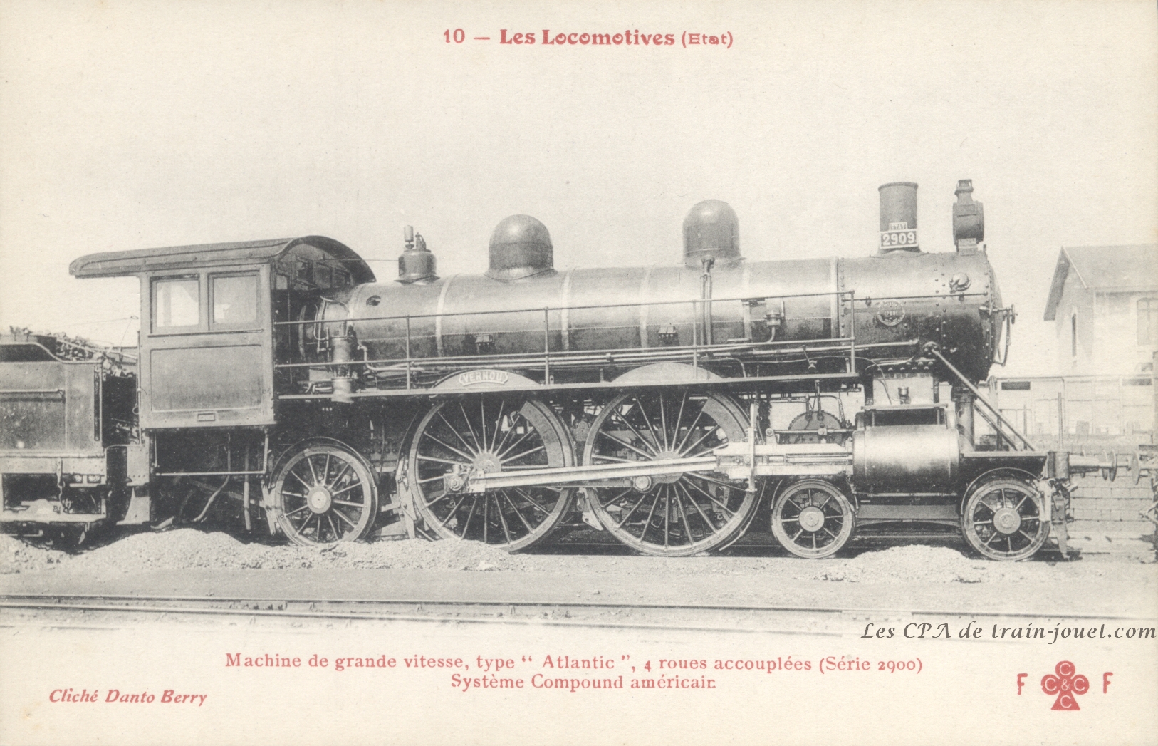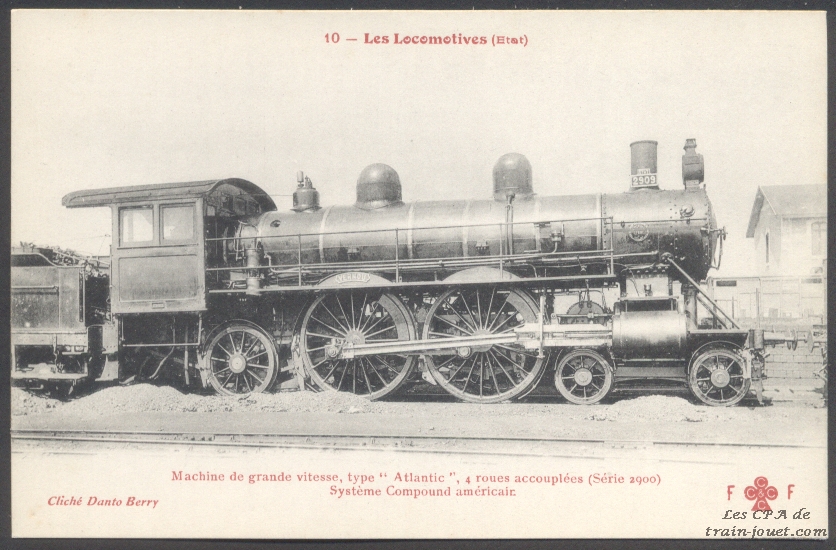 Les Locomotives.Machine de grande vitesse type "Atlantic" de grande vitesse.Série 2900.F. Fleury n°10 |