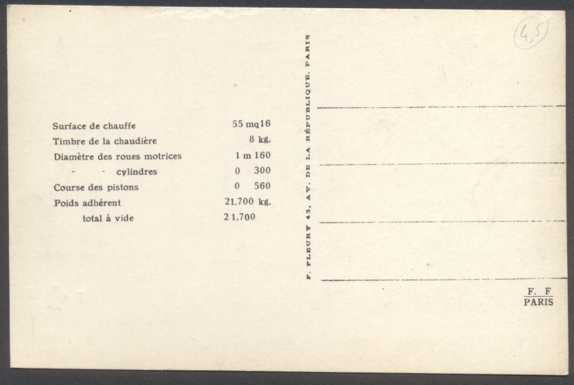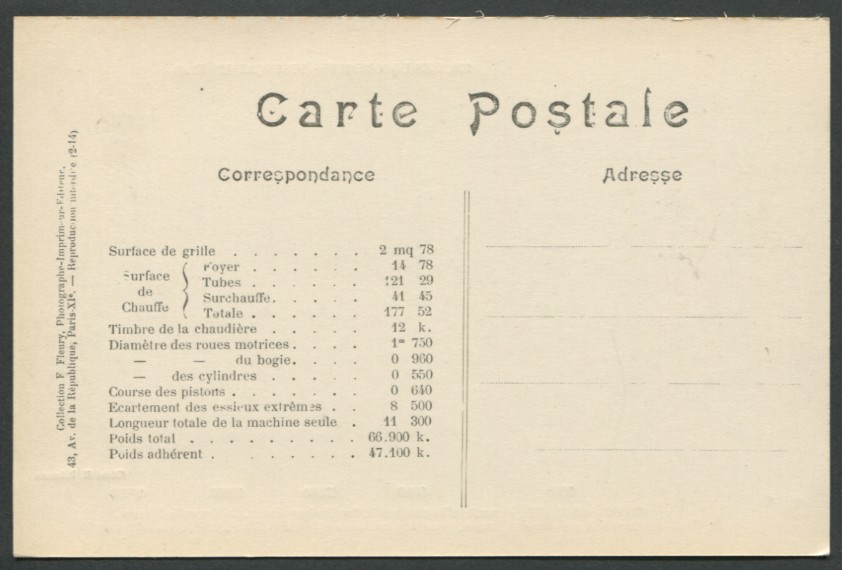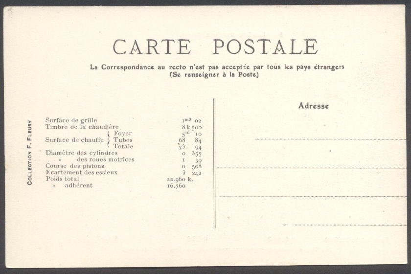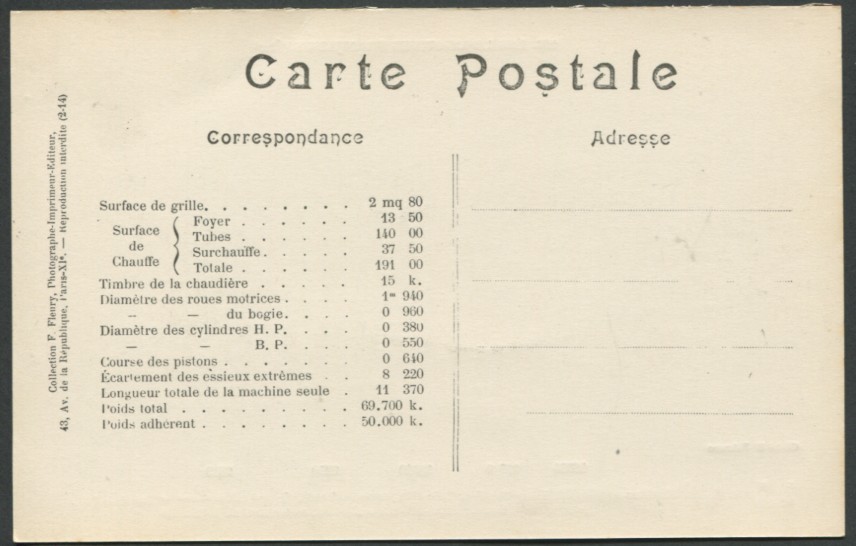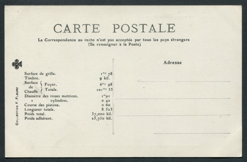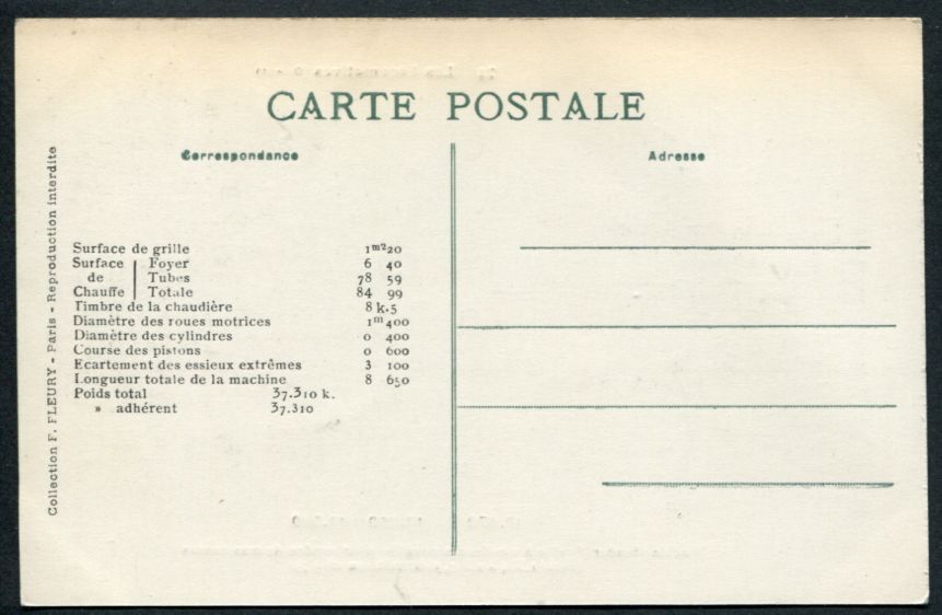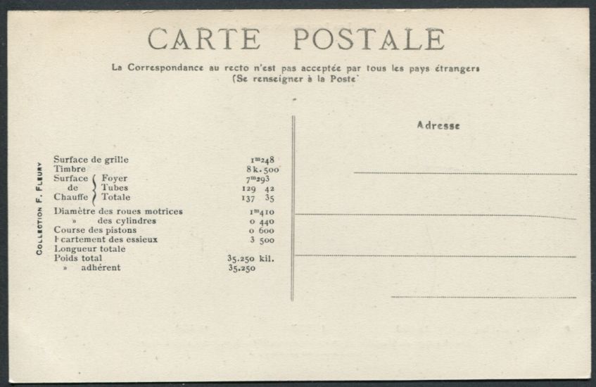 Les Locomotives.Machine de grande vitesse type "Atlantic" de grande vitesse.Série 2900.F. Fleury n°10 |