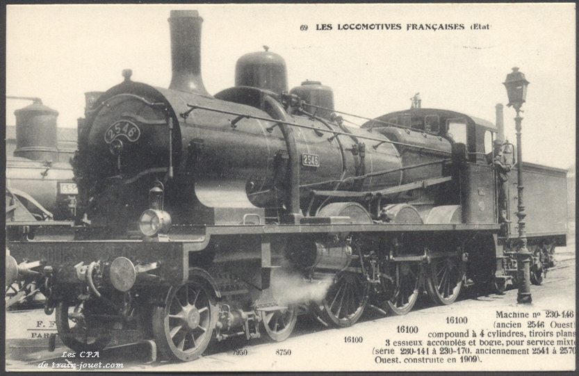 Les Locomotives Françaises.Machine n° 230-146 (ancien 2546 Ouest) compound,3 essieux accouplés et bogie avant (230) pour service mixte.F. Fleury n° 69 |