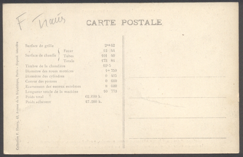 Les Locomotives Françaises.Machine 20-012 (type 020).F. Fleury C-155Mauvaise découpe et défault d'impression de la légende |