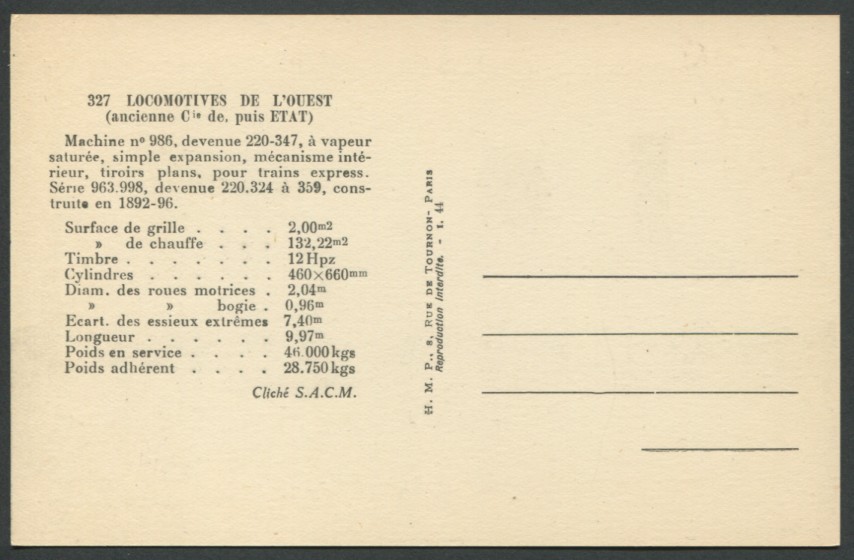Locomotives de l'Ouest (ex Cie puis ETAT)Machine n° 986