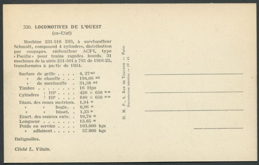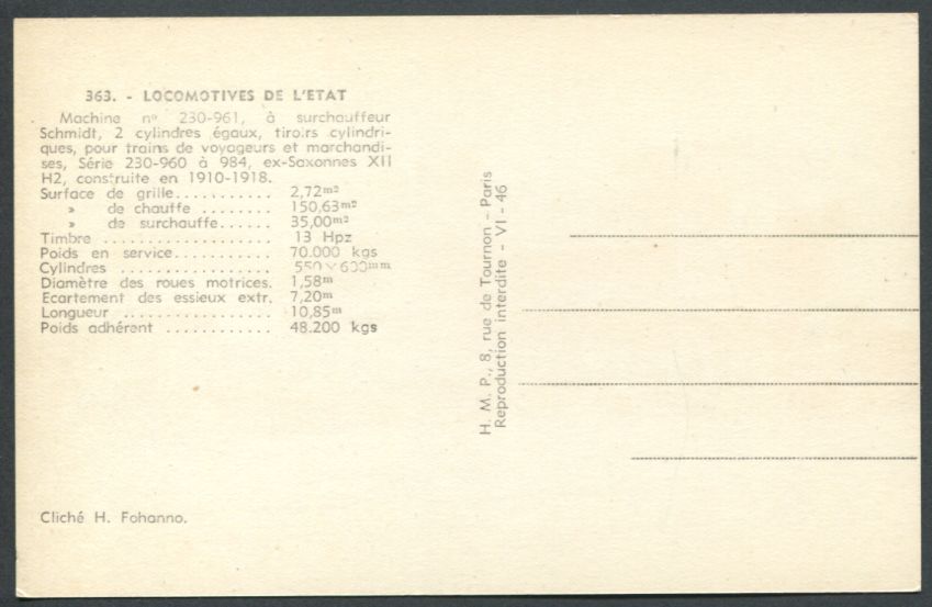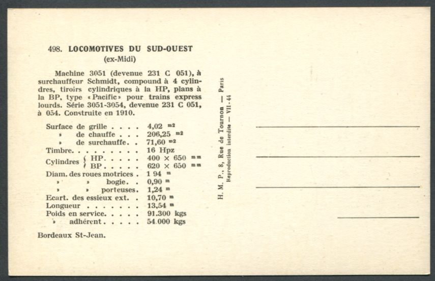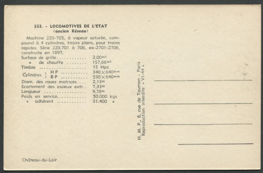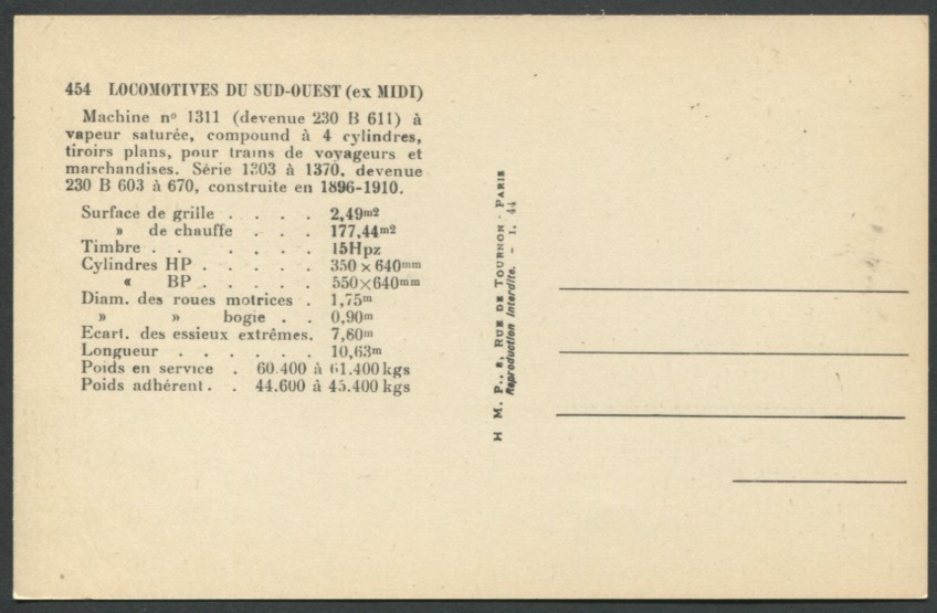 | CP de la série H.M.P. des réseaux ETAT - OUEST - MIDI |