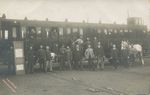 Une équipe pose devant une voiture IIIème cl. à portières latérales