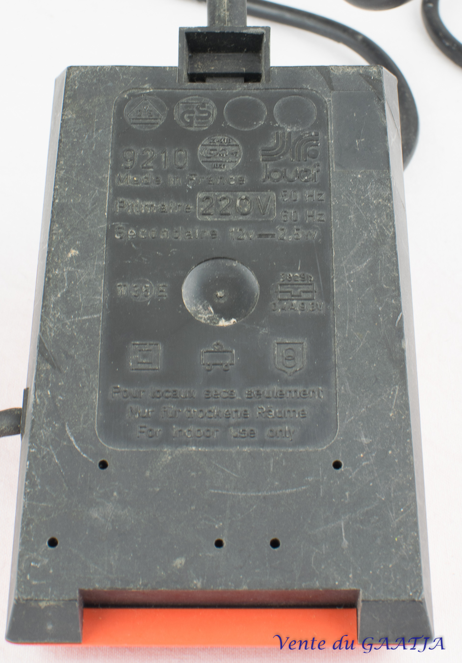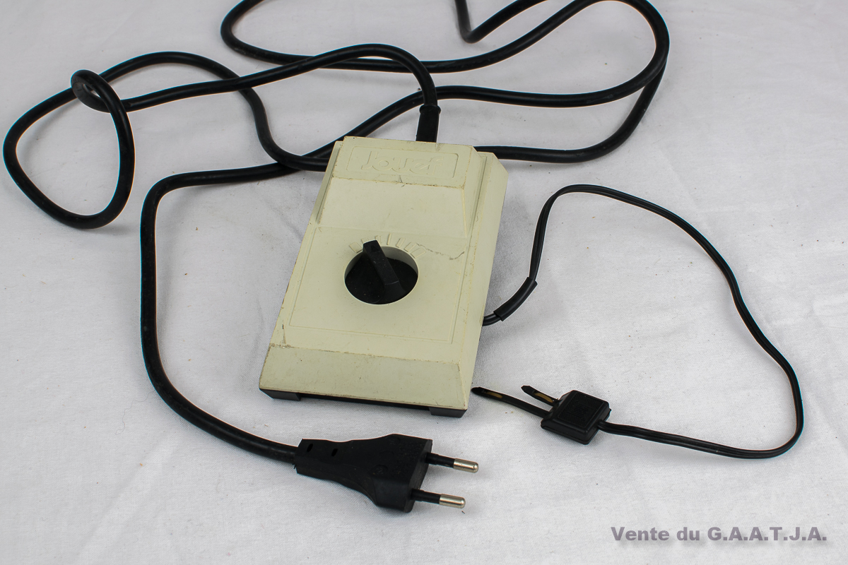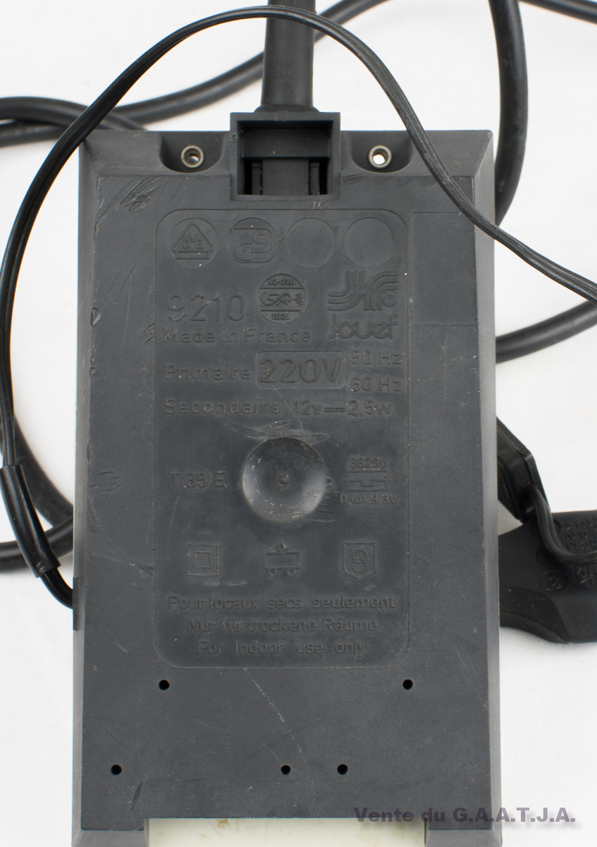 Un transformateur 2,5w, couleur Orange. Bon fonctionnement. Référence chez Jouef "9210". |