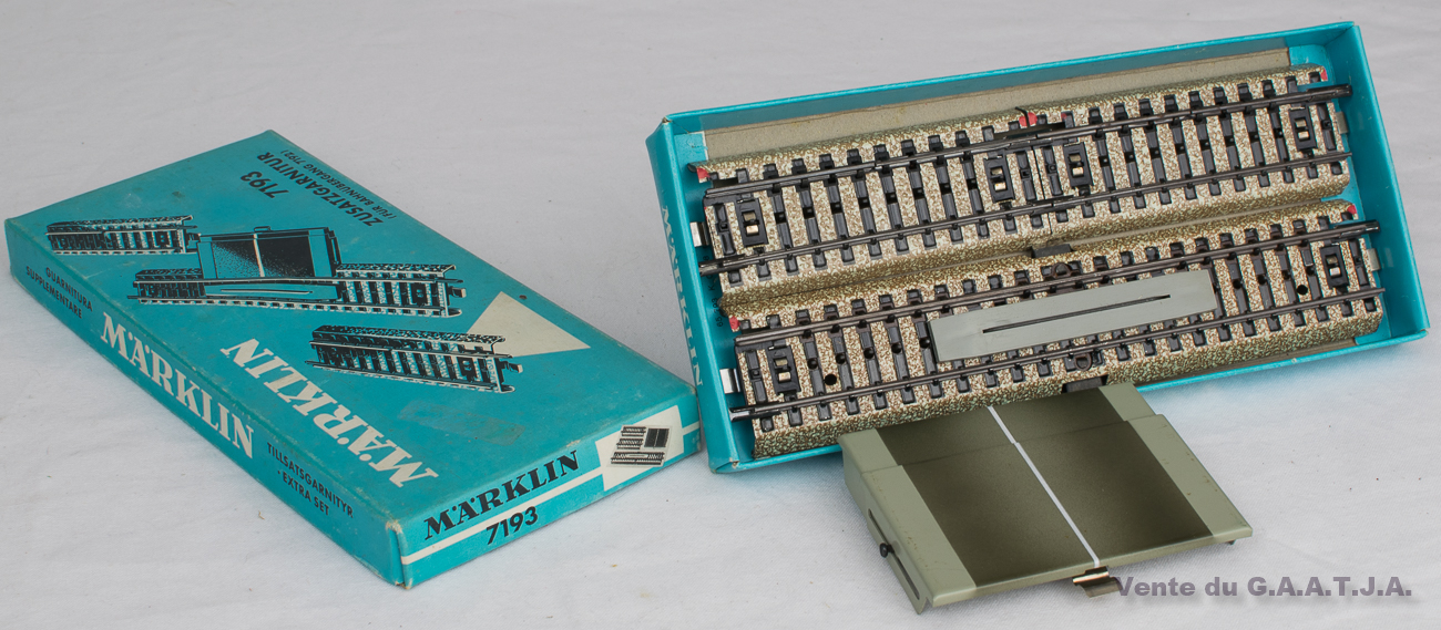 Une boîte d'un ensemble de voies complémentaires. Neuf, fond de magasin. Référence chez Märklin 7193. 14 Eur.