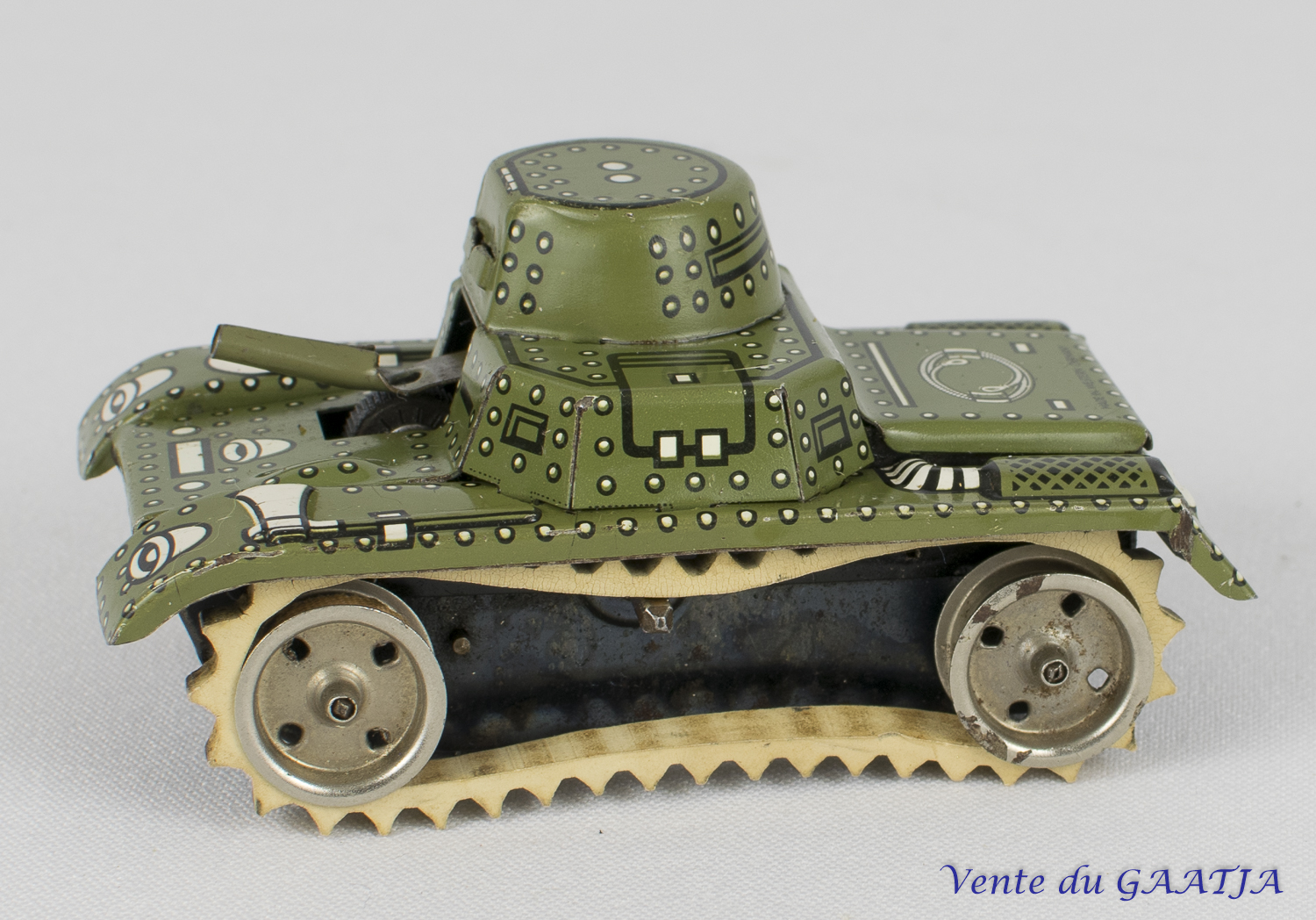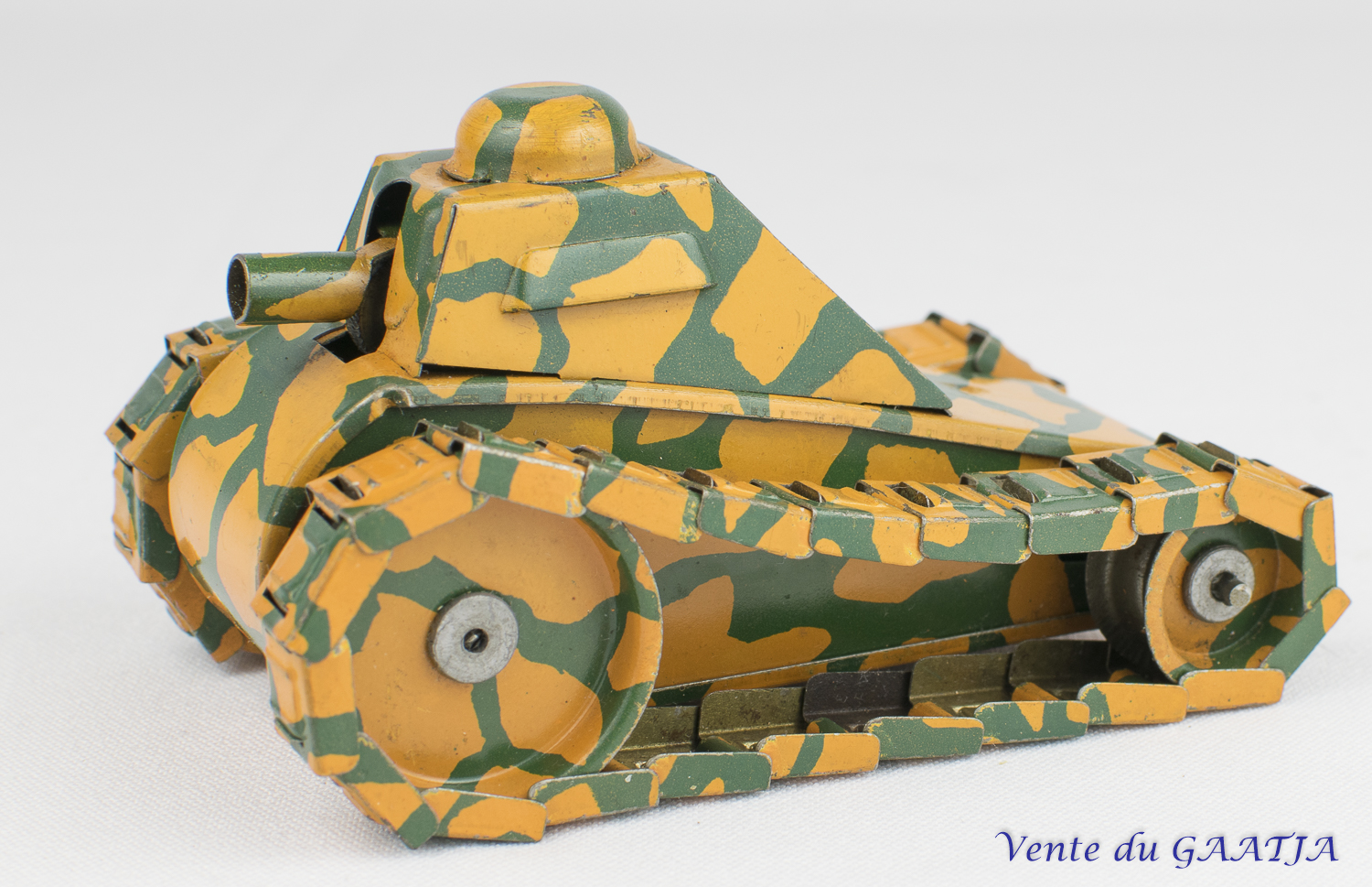 ![]() ![]() | Char à chenilles métaliques, mécanique, motif camouflage Bon fonctionnement et excellent état. 10 cm Pas de clé 43 Eur. + frais d'expédition (Tarif B) Réf. "JM12" |