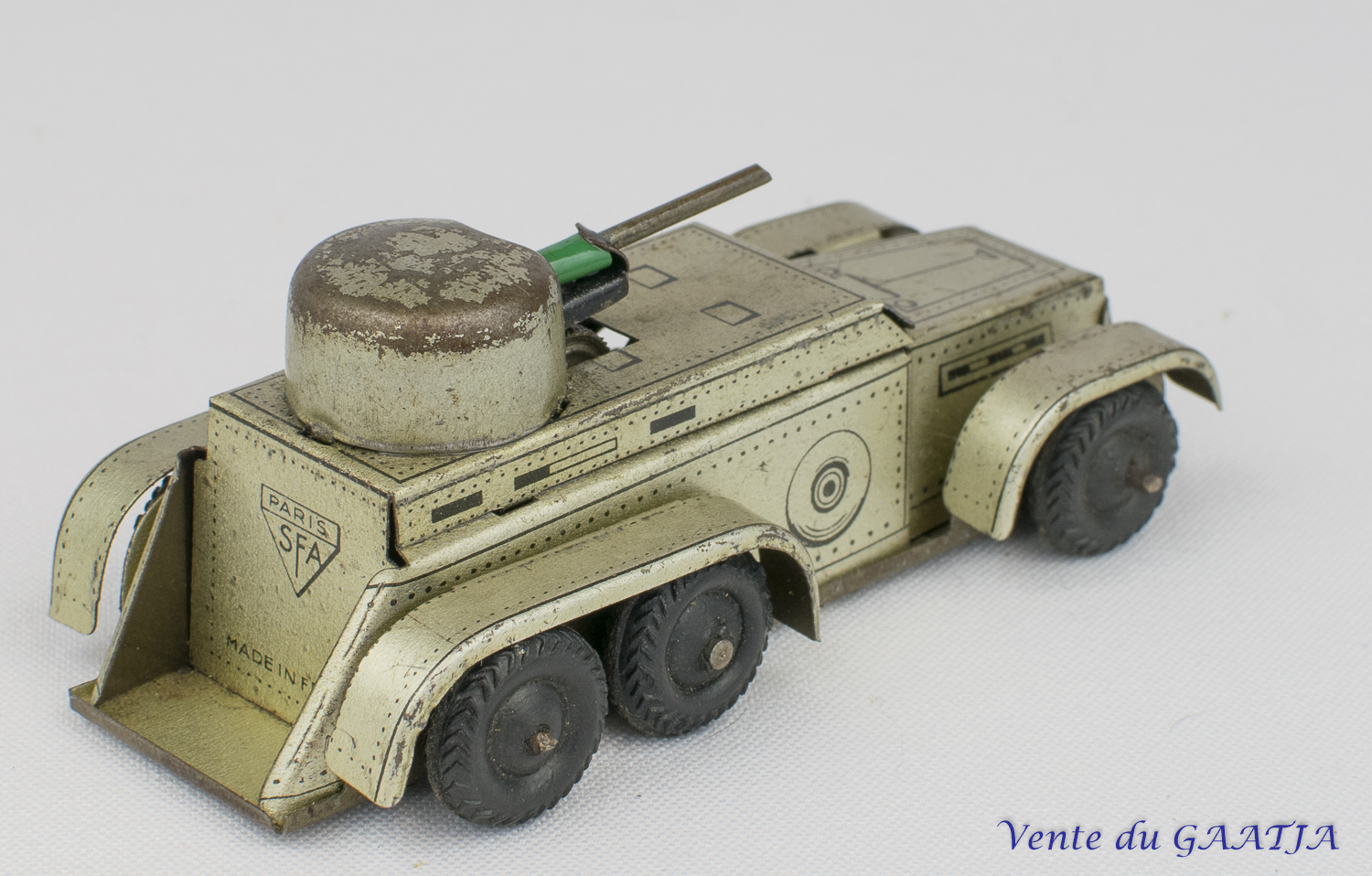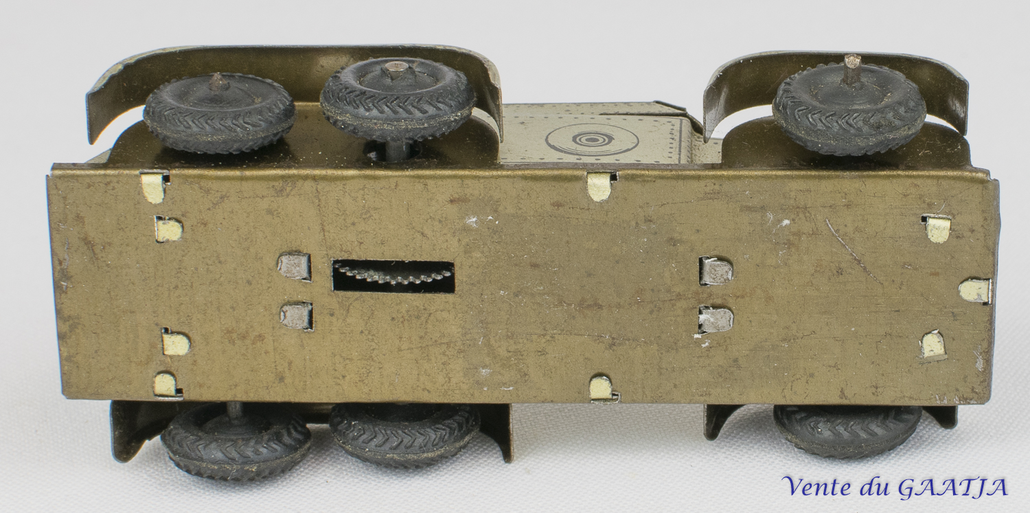 S.F.A. (Société de Fabrication et d'Assemblage) Auto-mitrailleuse mécanique en tôle. 10 cm, fonctionne. Pas de clé. 30 Eur. + frais d'expédition (Tarif A) Réf. "JM46" |
