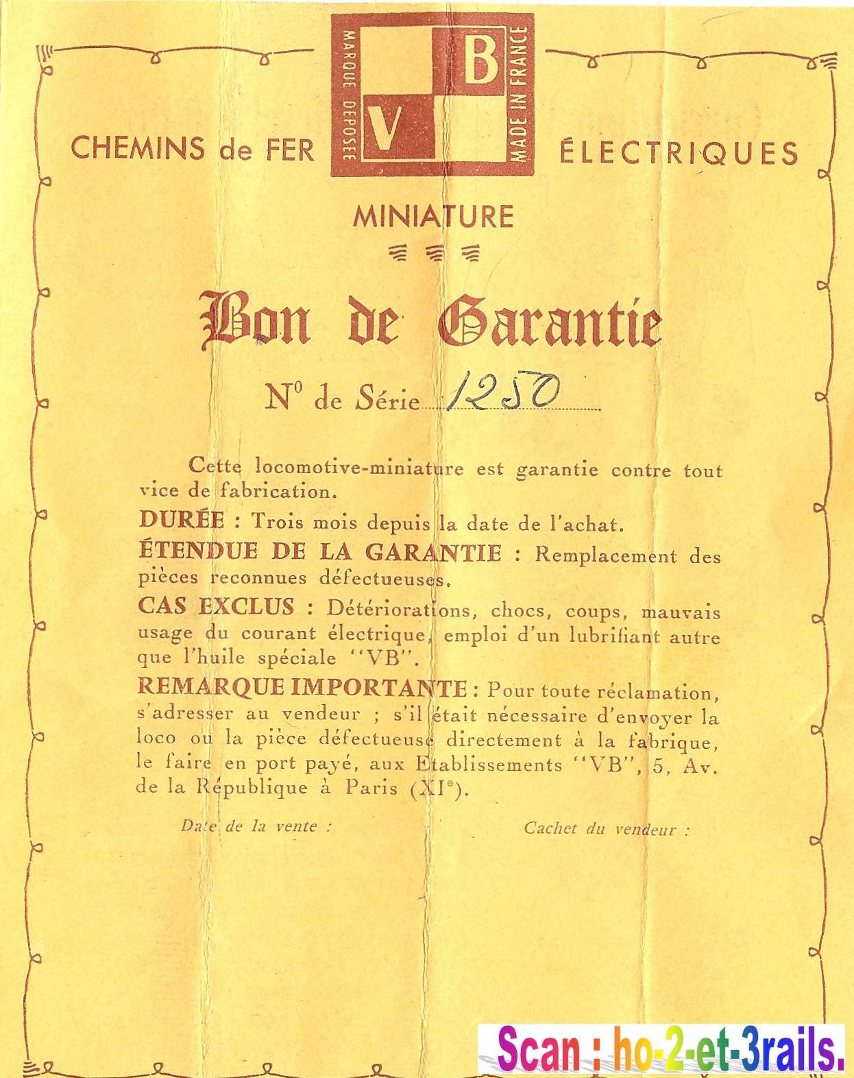 V.B. - Bon de garantie illustré - "060 DB"