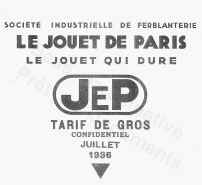 1935 - Publicité JeP - "Les plus beaux jouets JeP" Format 210 * 270 mm. |